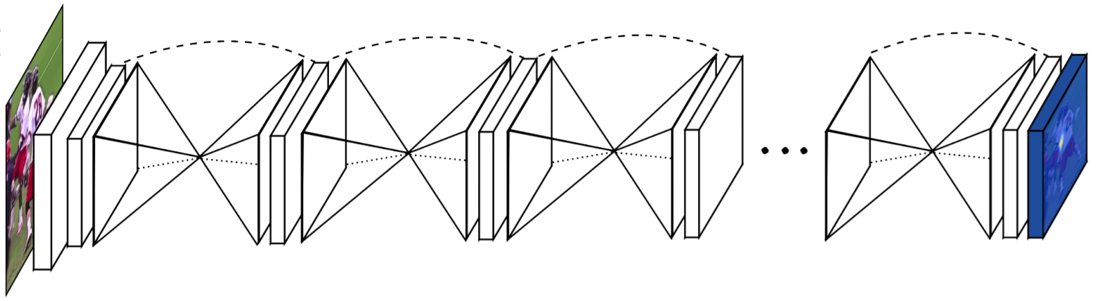 stacked hourglass network는 이름의 의미와 같이 hourglass를 쌓은 형태이다. upsampling을 진행하는 대부분의 기존 모델의 경우에는 hourglass를 하나만 사용하는 것과 대조된다. 성능을 향상하기 위해 반복되는 bottom-up, top-down architecture를 사용한다. 본 논문에서의 핵심은 intermediate supervision과 stacked hourglass를 사용한다는 것이다. stacked hourglass network for human pose estimation은 state-of-the-art model에서 base로 사용되는 경우가 많다. 본 글의 뒷부분에서는 어떻게 stacked hourglass network가 기존 모델보다 성능을 향상하는지에 대해 알아보겠다.